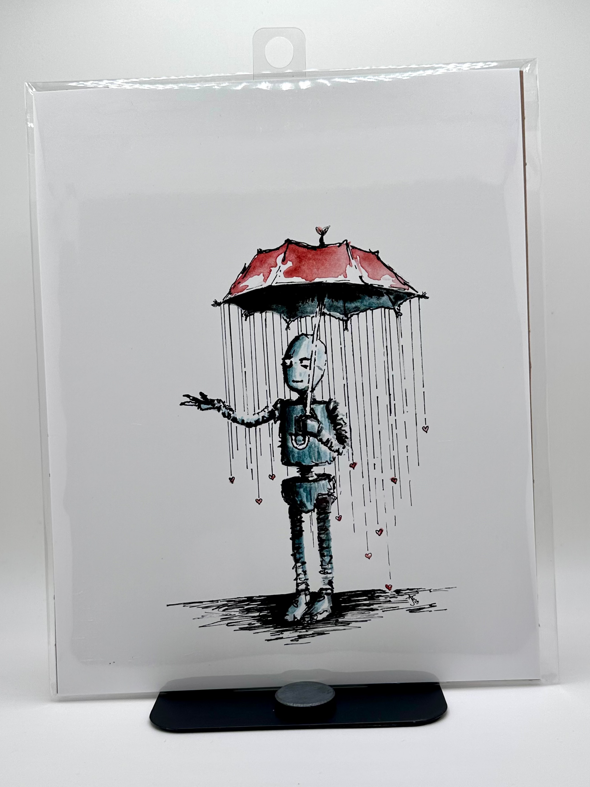 Original ink and watercolor on 9"x12" paper. Inspired by street graffiti artist Banksy and his creations, reimagined as robots.