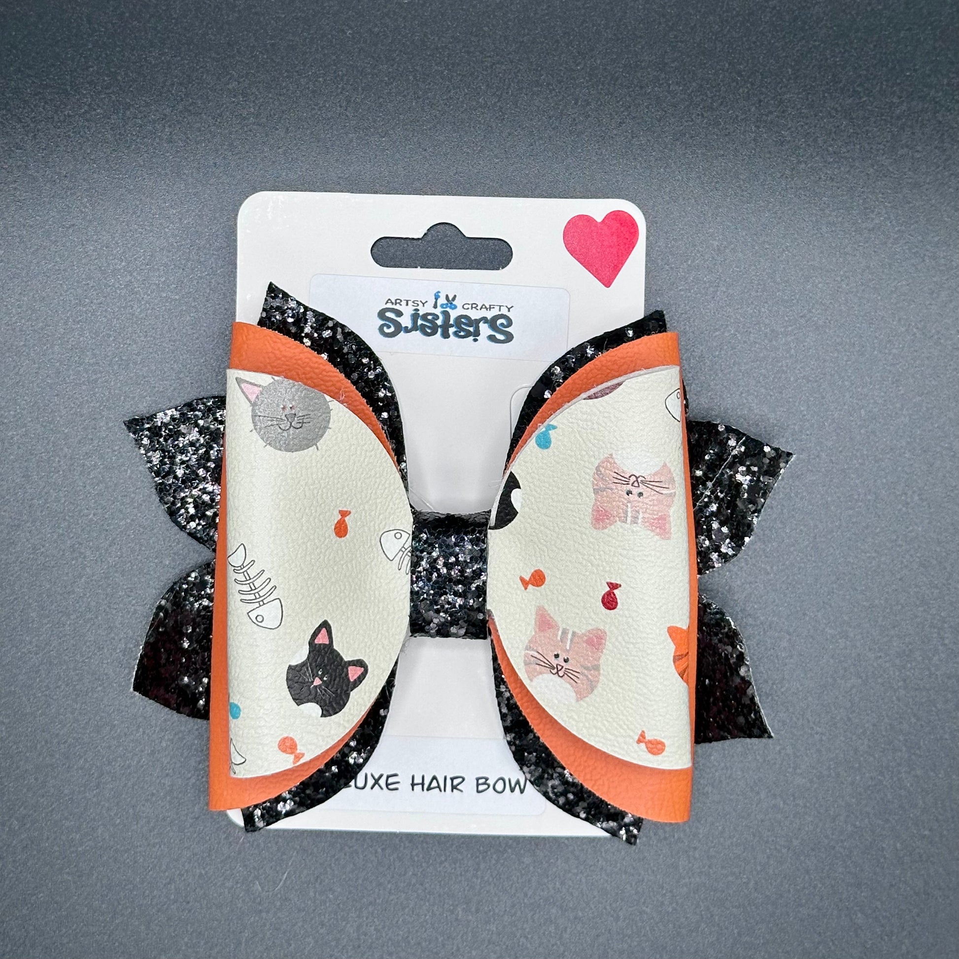 Make a statement with our layered faux leather bows! Each bow combines multiple textures — including glitter, solid, and patterned layers — for a bold, dimensional look. Glued onto an alligator clip for a strong hold and easy styling.