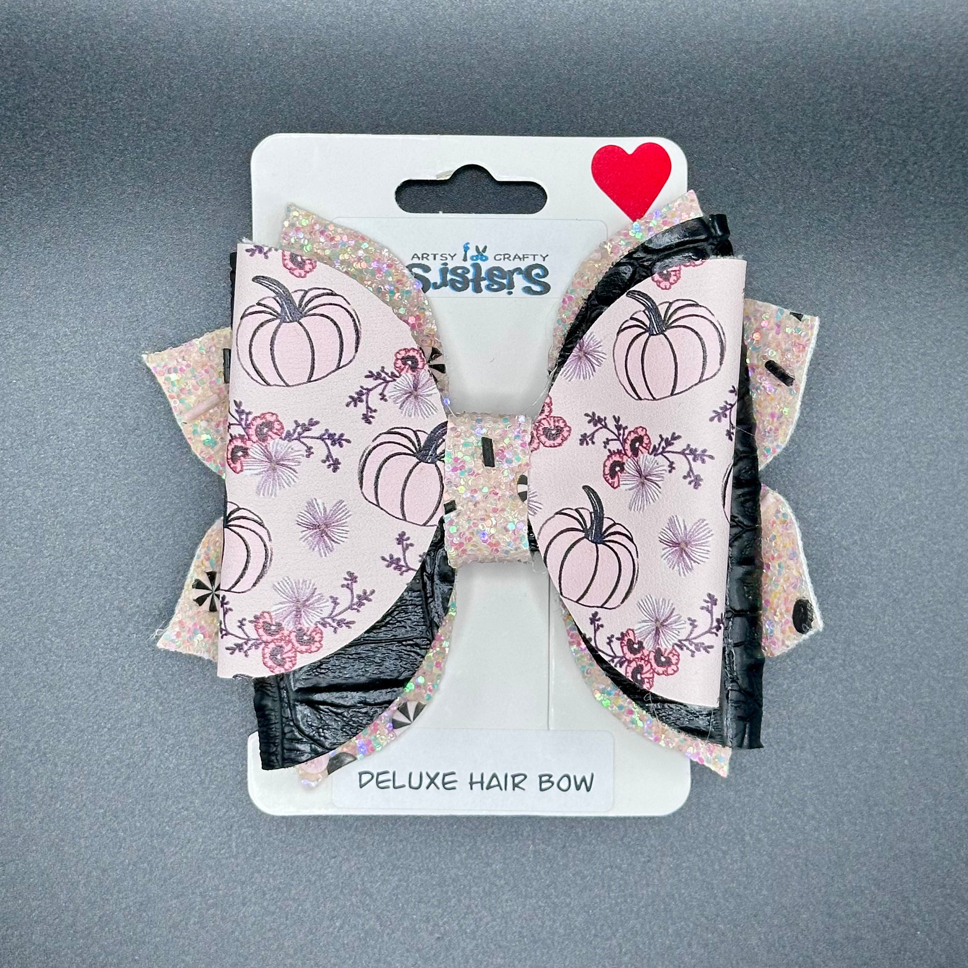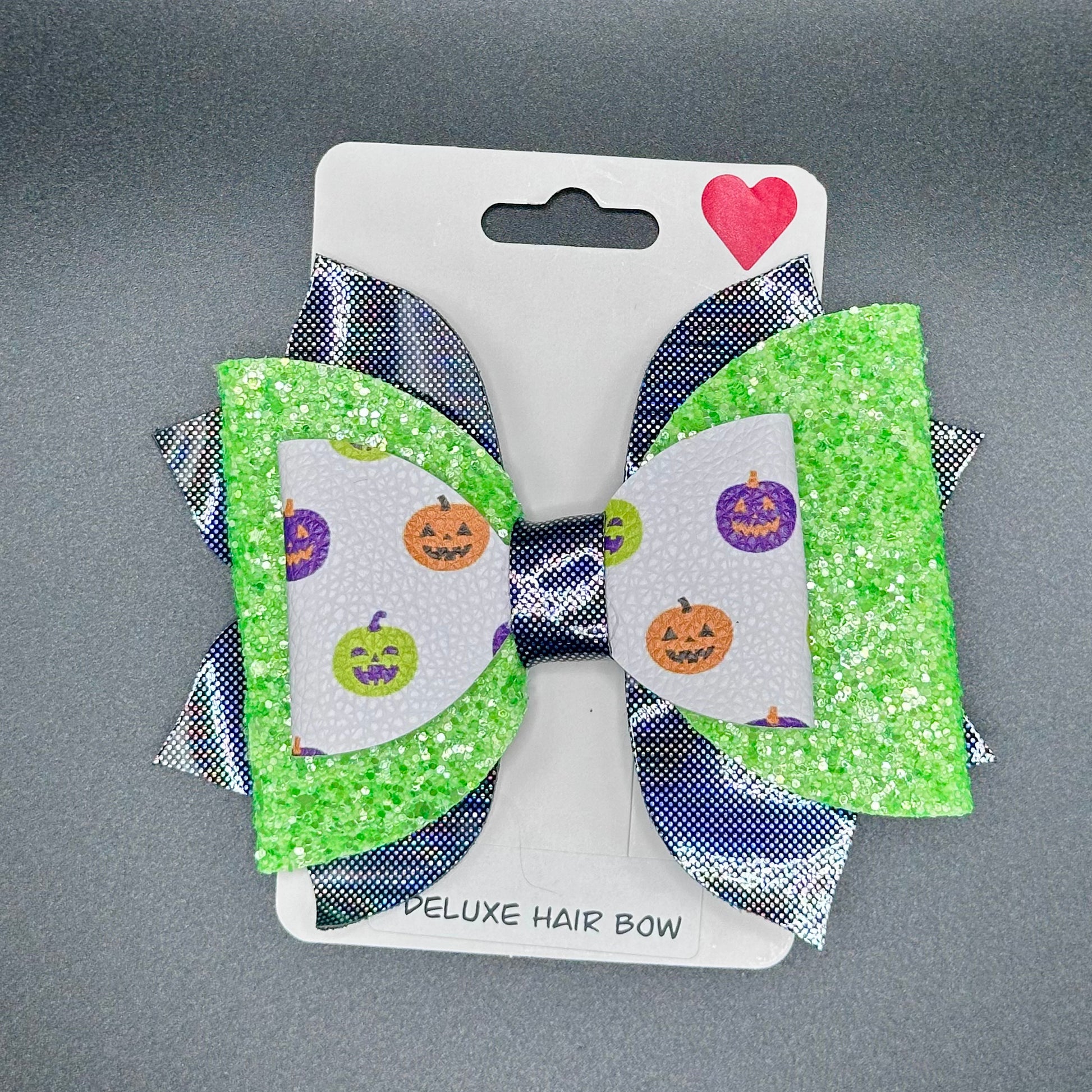Make a statement with our layered faux leather bows! Each bow combines multiple textures — including glitter, solid, and patterned layers — for a bold, dimensional look. Glued onto an alligator clip for a strong hold and easy styling.